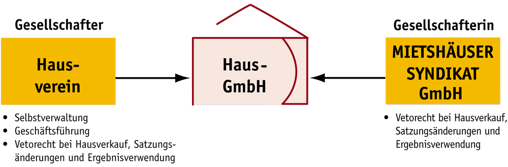 Grafik: Struktur eines Wohnprojekts im Verbund des Mietshäuser Syndikats
